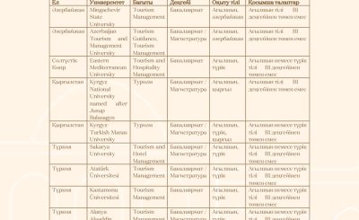 ССТ ЕСЕБІ Туристік дестинациялар менеджменті бағдарламасы