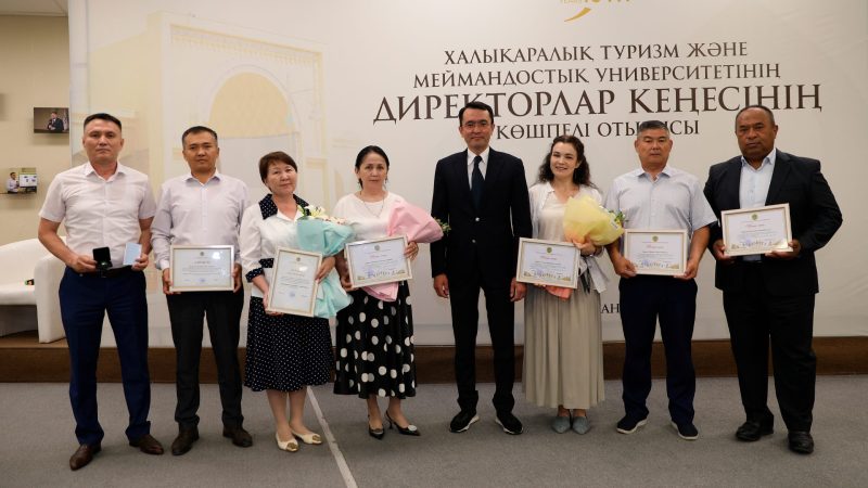 Члены Совета директоров встретились и побеседовали с профессорско-преподавательским составом университета. В ходе встречи Ержан Маликулы Еркинбаев наградил нескольких преподавателей за вклад в сферу туризма.